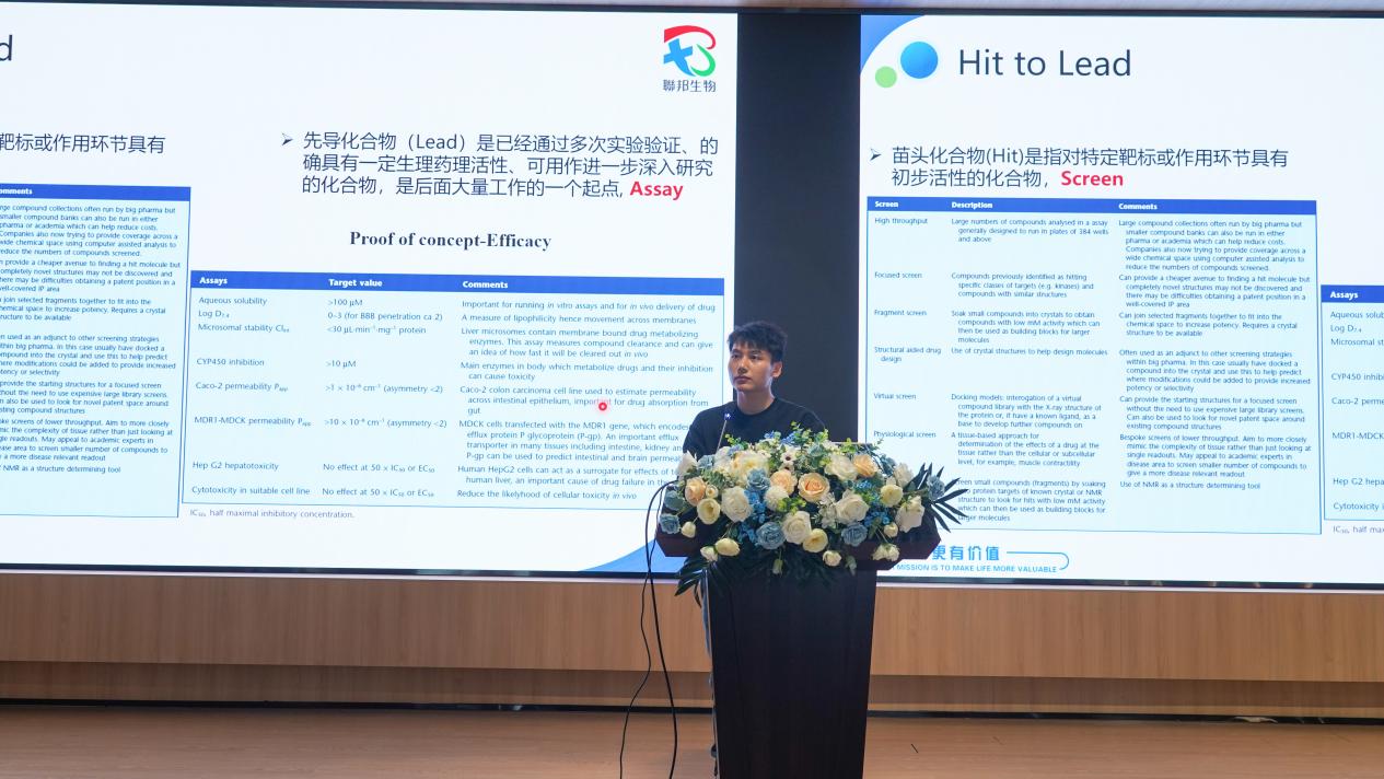 下午,联邦生物组织了两场专题分享。联邦生物项目管理中级研究员丁旭阳博士结合自身研发实践,以“药物临床前研究与产业化转化路径”为主题,介绍了新药研发的前沿动态与挑战;联邦生物质量中心副总监陈航则围绕药品质量标准体系,作了“药品质量管理”专题分享,阐述了质量管理在药物研发中的核心作用。两场分享紧扣药物开发的行业实际,引发了师生的热烈交流与思考。