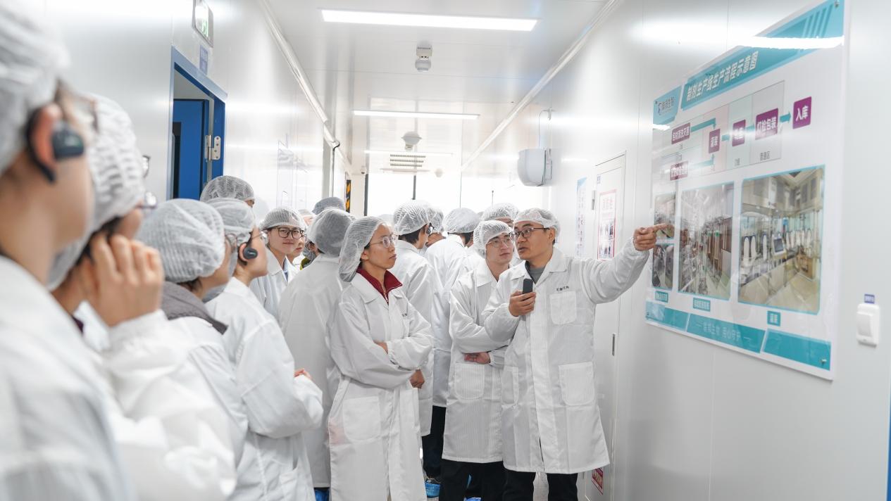 上午,师生一行抵达联邦生物所在地。联邦生物所属上级公司联邦制药集团人力资源总监兼联邦学院院长马萍、联邦生物人力行政部高级经理蒋惠予以接待,在介绍完整体状况后,联邦生物相关人员带领师生参观了展厅和研发中心,之后联邦生物生产中心101车间负责人黄飞虎为师生讲解了生产工艺与设备运行原理,并带领大家深入质量平台与生产车间实地观摩,使师生对药品生产的质量管理体系与现代化工艺流程有了直观而深刻的认识。
