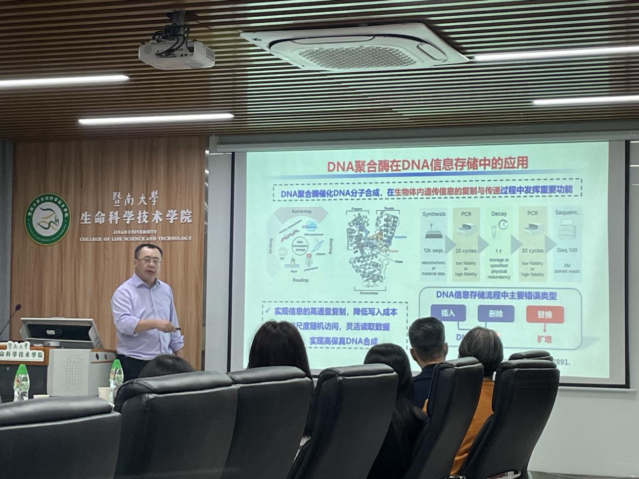 本次讲座中,李教授聚焦于酶促合成生物医用高分子材料及DNA信息存储,深入分析了生物医用高分子材料的绿色合成与应用以及DNA信息存储中的关键科学问题。系统阐述了酶催化过程中结构与功能关系,明晰酶促聚合动力学及催化机制,构建新型酶促化学偶联催化体系,推动合成材料在寡核苷酸基因治疗中的应用;并系统阐述了DNA聚合酶及其融合蛋白,作为DNA信息存储的重要酶分子工具,如何实现信息的快速及精准存储,对推进BT-IT交叉技术的发展与范式革新具有重要的意义。